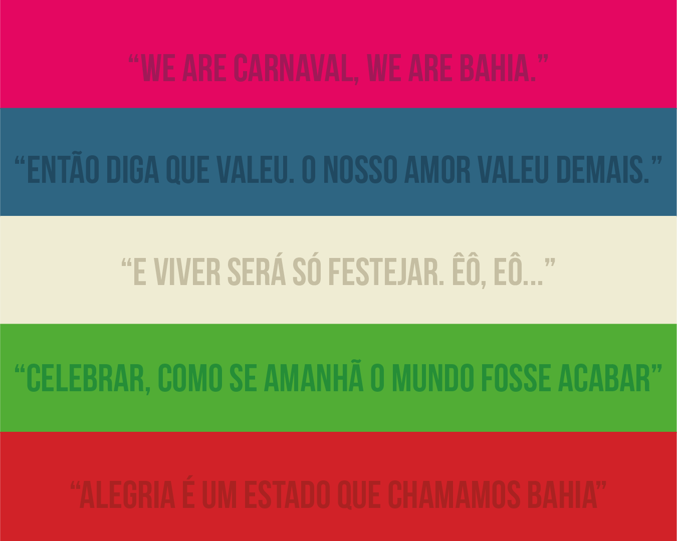 Para definir as 5 estampas que vestiram os 5 dias de carnaval, fizemos uma pesquisa com colaboradores e apoiadores da marca pra saber deles, qual palavra e música definia o carnaval deles.
