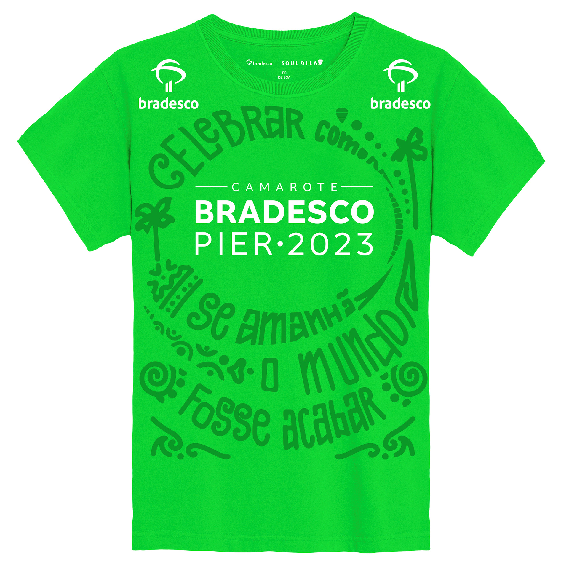 Carnival is the biggest street party on the planet, and Bradesco is involved in some of Brazil's biggest carnivals. In 2023, in partnership with Soul Dila, I was responsible for creating the abadá T-shirt for the Camarote Pier Bradesco, located on the Barra-Ondina circuit.