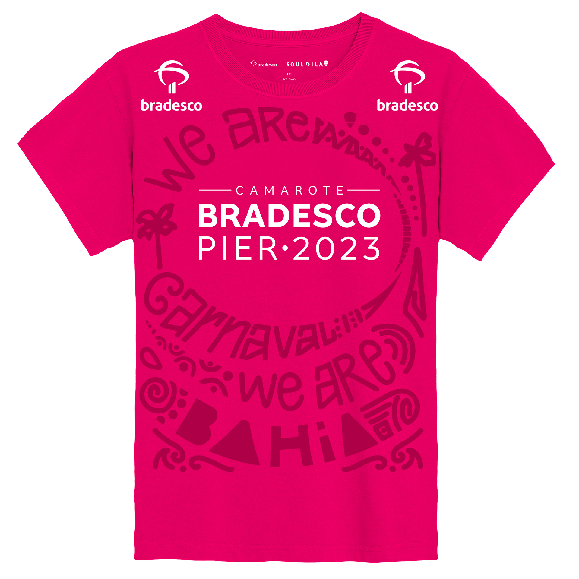 O carnaval é a maior festa de rua do planeta e o Bradesco está nos maiores carnavais do Brasil. Em 2023, numa parceria com a Soul Dila, estive responsável pela criação da camiseta de abadá para o Camarote Pier Bradesco que fica no circuito Barra-Ondina.